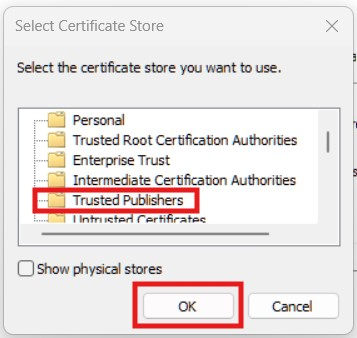 - From the list, select Trusted Publishers.