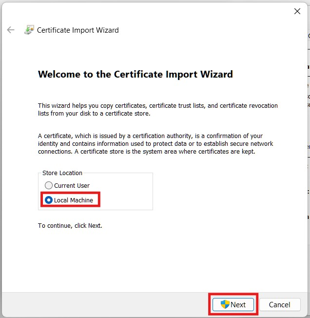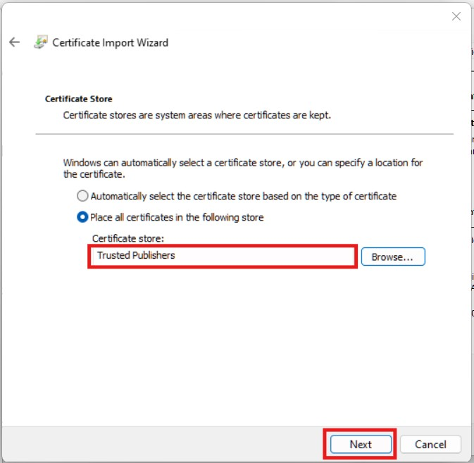 Step 8 – Select Certificate Store¶