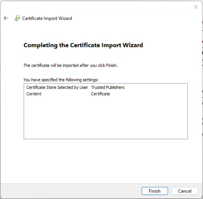 Step 9 – Select Trusted Publishers¶