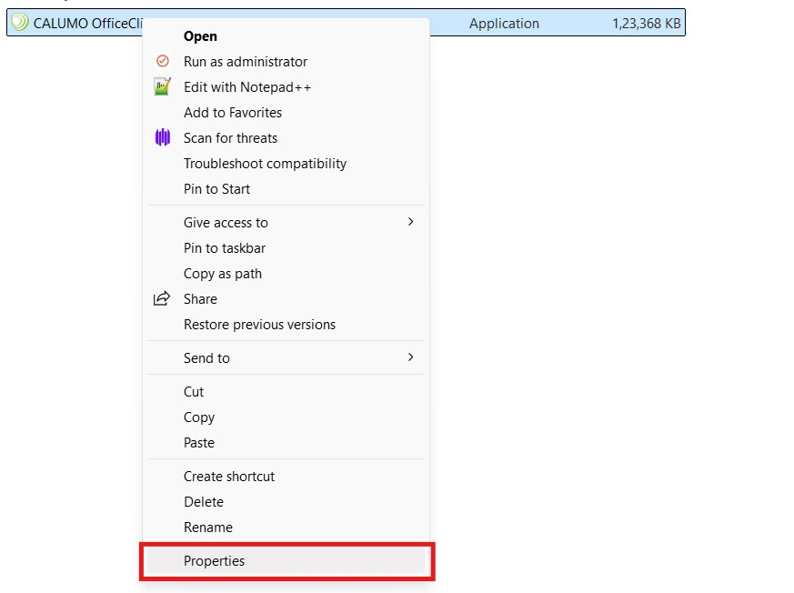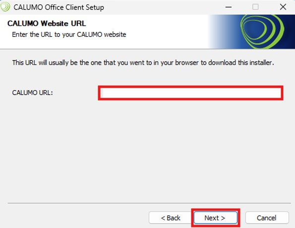 Visit the CALUMO application URL and download the Office client .exe file.