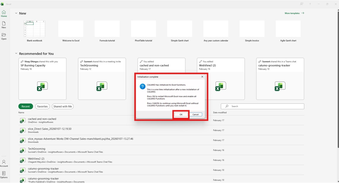 Once installation is complete, open Microsoft Excel and click OK on the prompt that appears.