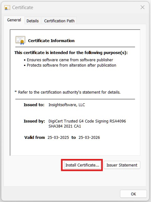 - Install Certificate… button